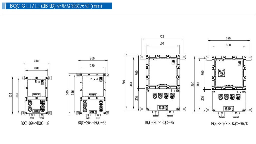 · 主要采用 隔爆型(Ex d) 防爆結構。其堅固的殼體(通常為鋁合金)能承受內部元件(如接觸器吸合/分斷時)產生的電弧或火花可能引發的爆炸,并通過精加工的隔爆面間隙阻止爆炸向外傳播。