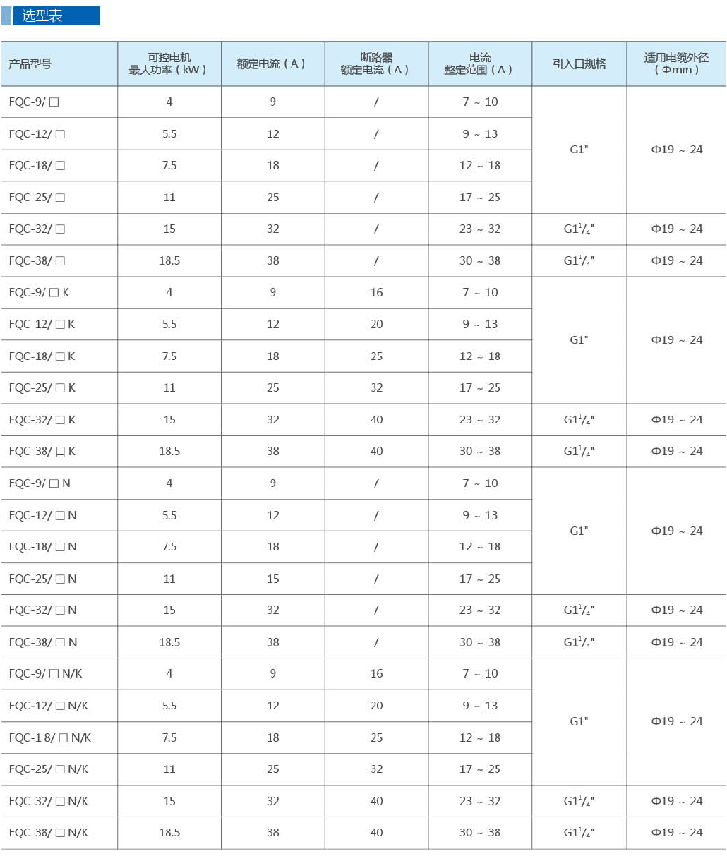 | **產(chǎn)品型號** | FQC-□□□ (后綴表示電流等級和配置) |